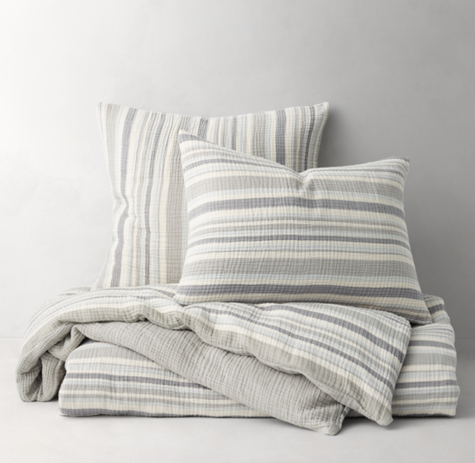 Our Turkish-cotton gauze bedding is washed to enhance its crinkled weave and relaxed, broken-in softness. Lightweight and breathable, with a bit of stretch, it's perfectly cozy for year-round layering.